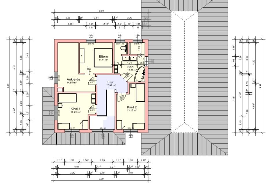 Ist die Ankleide gewollt so groß? Imho völlig verschenkter Platz. Könnte glatt als ein drittes Kinderzimmer durchgehen. Schlafzimmer dagegen eine Kammer.