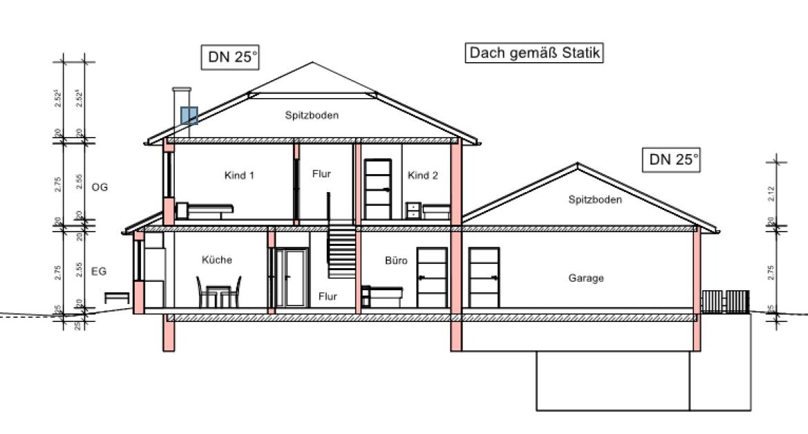 Raumbedarf im EG: Küche/Esszimmer, Wohn- und Esszimmer, Badezimmer, Büro/Gästezimmer, Hauswirtschaftsraum, Hobbyraum, Werkstatt. Raumbedarf im OG: Badezimmer, zwei Kinderzimmer, Schlaf- und Ankleidezimmer.