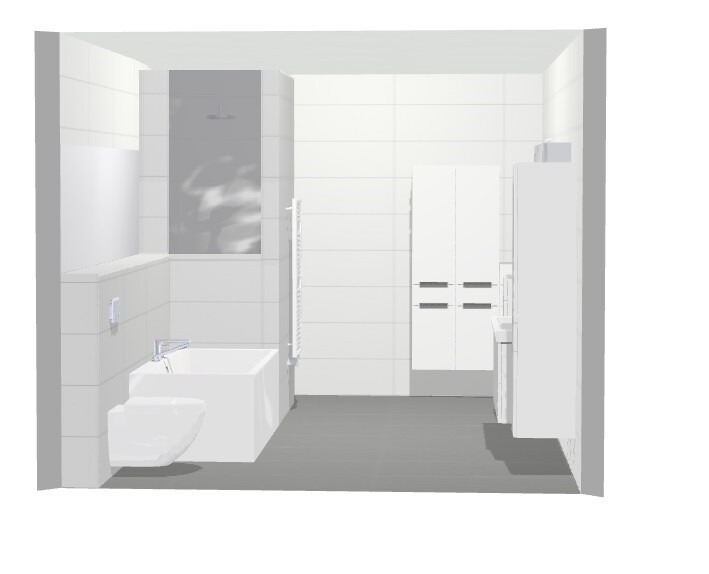 Ich würde die Duschwand an die Raumwand planunten andocken und die Trennwand an der Badewanne nur auf zb 1,60 Höhe machen.