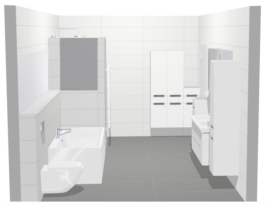 Ich find das sehr schön bis auf die dunkle Dusche, ich bin da immer für Glas, wenigstens die obere Hälfte. Aber das kollidiert mit Deinem Handtuchhalter - geht nur eins von beidem.