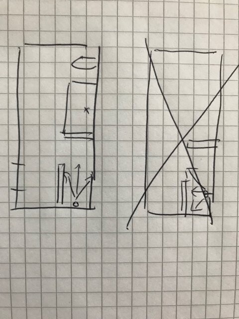 Skizze eines Grundrisses auf kariertem Papier mit zwei Layout-Entwürfen