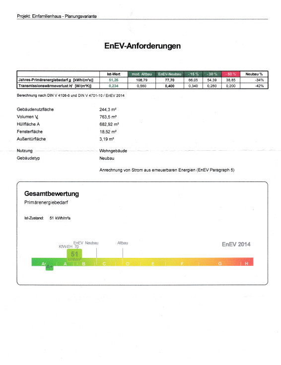 Die Woche war der Energieberater da und hat uns die Berechnung für das geplante Kfw 70 Haus vorgelegt.
