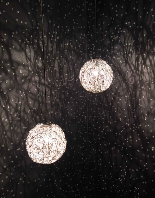 Ebenfalls wie im Wohnzimmer und Büro deutliche Gewinne ggü. des Vorentwurfs! Richtig Hammer! Im Schlafzimmer drei Spot-Inseln. Passt! An den Nachttischen keine Nachttischleuchten klassischer Art sondern solche Pendelleuchten wie die in der Anlage mit Drahtgestell.
