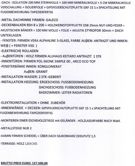 Der Bekannte hat einige Sache im Angebot noch ändern lassen, Außen Dämmung, Änderungen am Gratis Kamin... Endpreis 170.000,00€ für 180m² auf 3 Stockwerken + Extras
