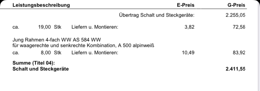 Ist das von dir so gewünscht, dass die Preise der einzelnen Positionen nicht zu sehen sind? Das wäre schon nicht unwichtig, diese zu sehen, um mögliche Einsparungen benennen zu können...Wurde zu groß und unlesbar, daher hab ich das zurecht geschnitten. Wie kann ich denn PDF hochladen?Notstrom21.04.20 23:29