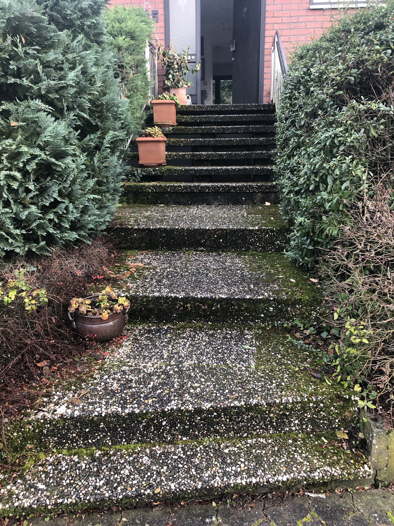 Wir haben das Haus Anfang diesen Jahres übernommen und ich finde diese Waschbetonplatten nicht schön, selbst wenn man diese mal reinigen lassen würde.