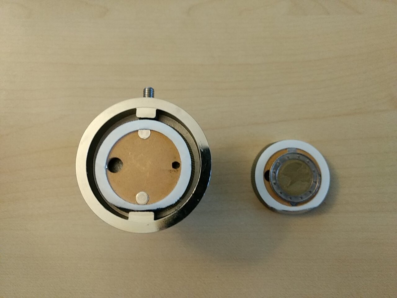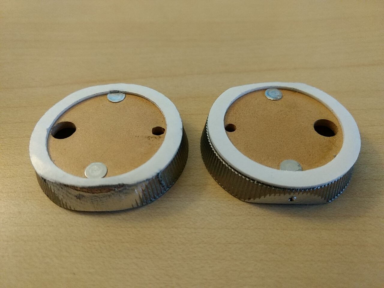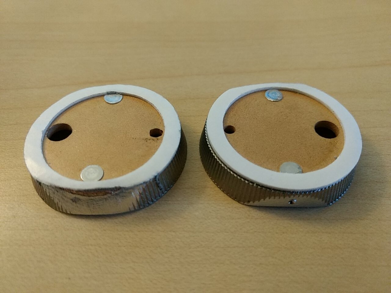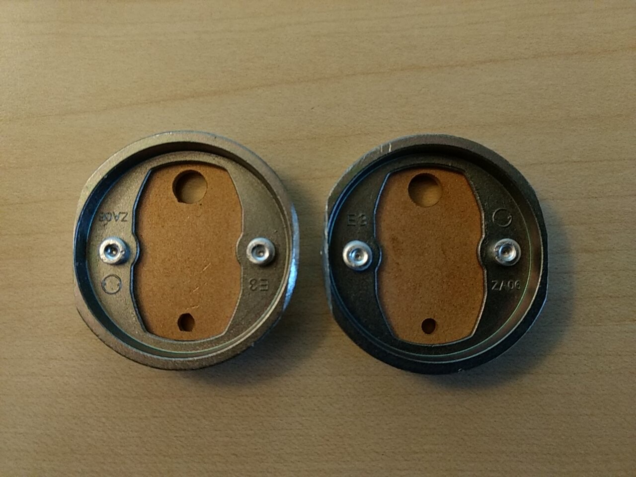 Nach etwas Feilen passen die Nie wieder bohren Adapter in die Grohe Essentials. Beim Einspannen in den Schraubstock am besten ein 2 Euro Sück unterlegen, dann wird der Klebering nicht gepresst.