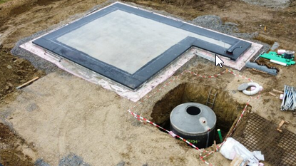 Ja, die Löcher sind riesig. Hier mal ein Bild von meinem Loch im Vergleich zur Bodenplatte. Zisterne hat 8 cbm
