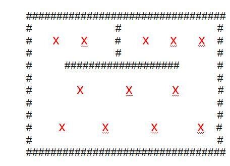 Ich hoffe die Formatierung zerhackt mir nicht alles, so hatt ich mir die Anordnung vorgestellt (# is die Wand, X die Spots):