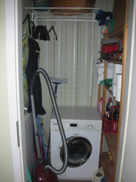 Jetzt aus meiner Wohnung noch meine "Abstellkammer/Nische" mit Tür nach außen, Breite ca. 130 cm, Tiefe ca. 125 cm. Platz für meine Waschmaschine mit Aufhängemöglichkeit, Vorratsregal. Außerdem Sicherungskasten.