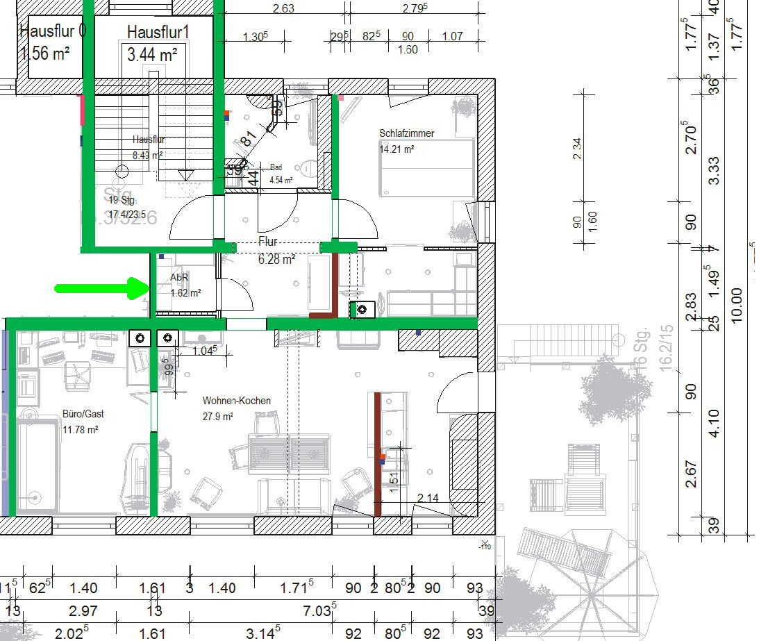 Hier der Grundriss dazu, Tür der Abstellkammer habe ich dann aber rechts angeschlagen und nicht links, wie hier auf dem Grundriss.