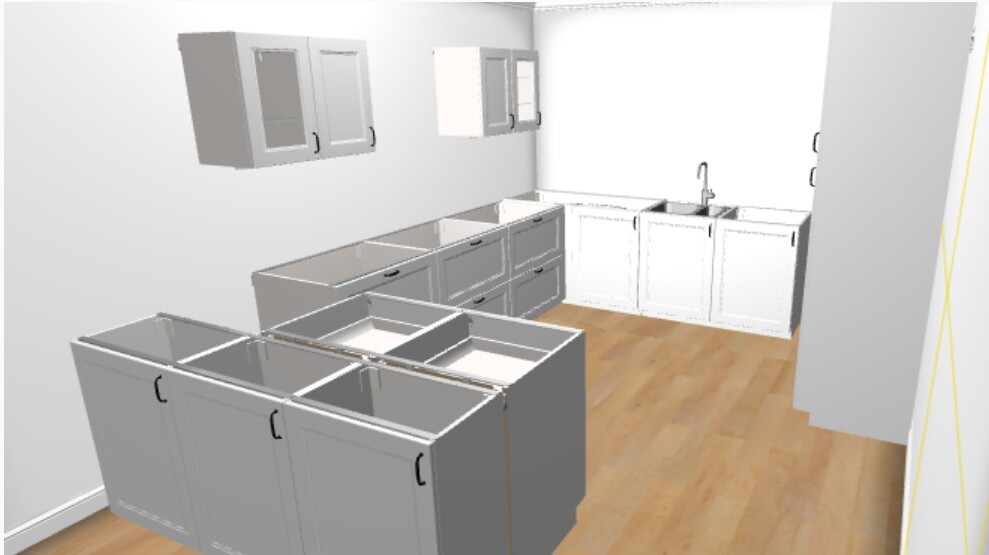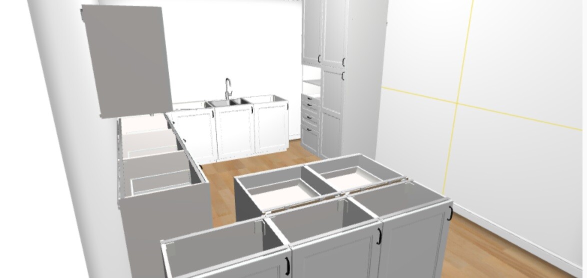 das Küchenstudio hat uns leider keinen Plan gesendet, sodass ich die Küche bei Ikea nachgebaut habe. Bitte entschuldigt die etwas stümperhafte Darstellung, hoffe jedoch, dass für euch das Ganze nachvollziehbar genug ist.