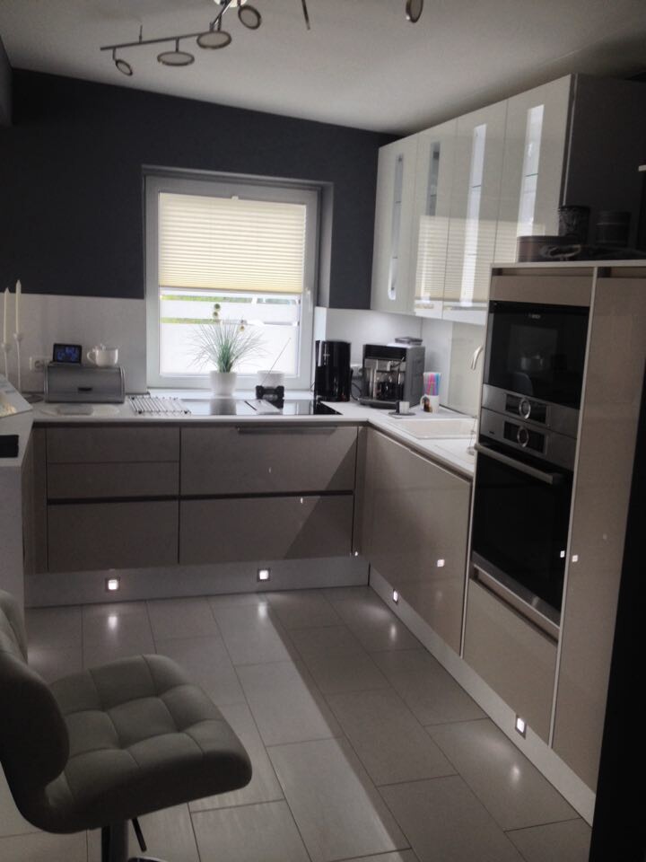 Hier meine Nolte Küche ,auch nicht groß der Preis war echt hoch sie sollte 29000Euro inkl.Geräten und aufbau kosten. Da die Küche in der Ausstellung stand haben wir gefragt ob wir diese Küche so wie sie da steht günstiger bekommen und er sagte ich klär das mal ab und was soll ich sagen..... wir haben diese Küche für 14000 Euro inkl. Aufbau bekommen.