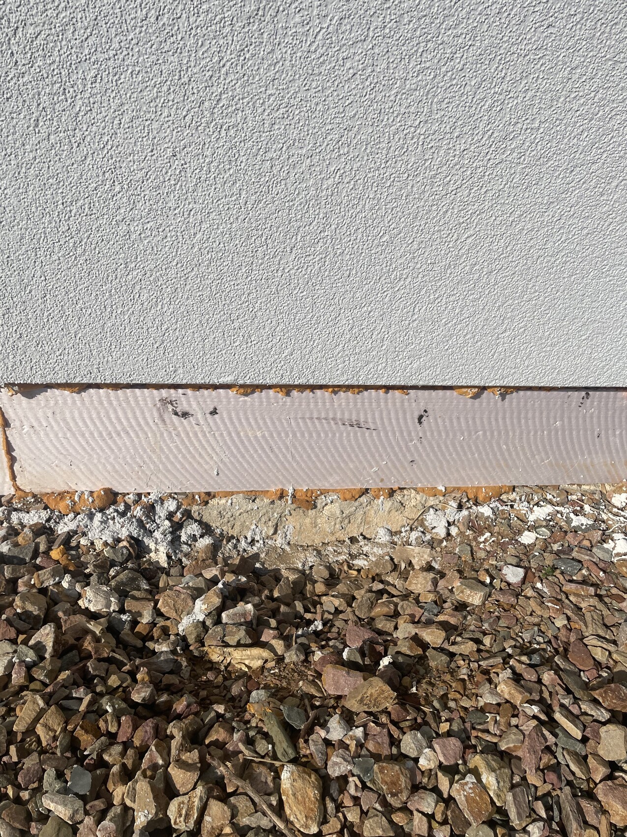 ich würde gerne die Noppenbahn selbst legen und dann den Spritzschutz machen. Ich hätte da mal eine Frage. Zur Zeit sieht es bei uns so aus (siehe Bild). Man sieht die Dämmplatte (also dieses Styropor und darunter die Bodenplatte). Muss ich die Noppenbahn auch an die Bodenplatte legen (und damit verbunden dann noch ausbuddeln) oder reicht es, die vor die Styroporplatten zu legen?