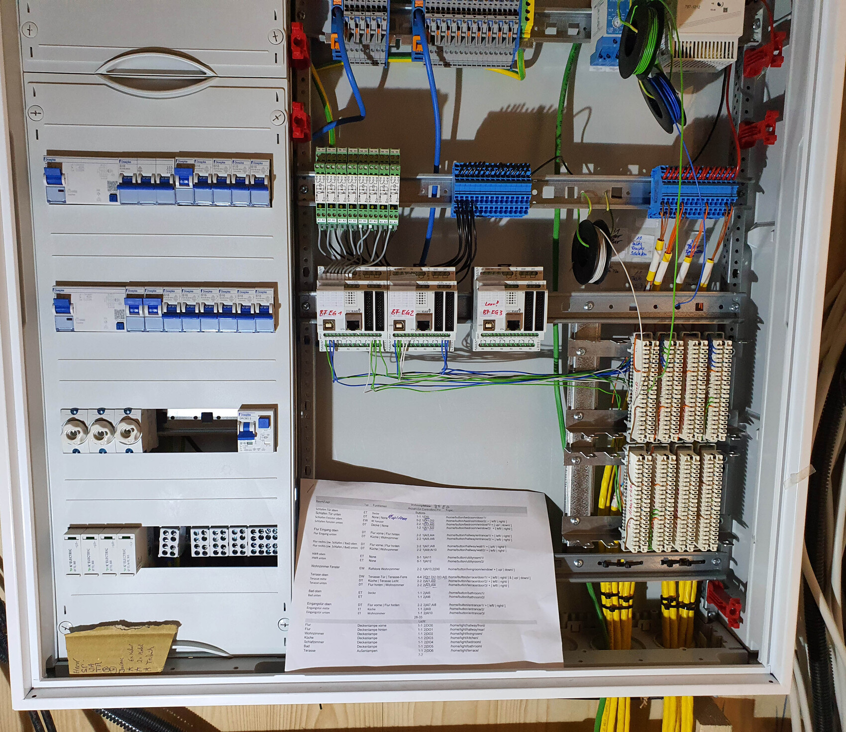 ... habe oben mal grob durchgezählt, passt in die mit dem Elektriker besprochene UV. Er (Elektriker) hat 48TE + 24 Rangierschaltung für Strom, wir haben für Smarthome inkl. Rangierverkabelung 96TE + 24TE verdeckt mit niedriger Bauhöhe.