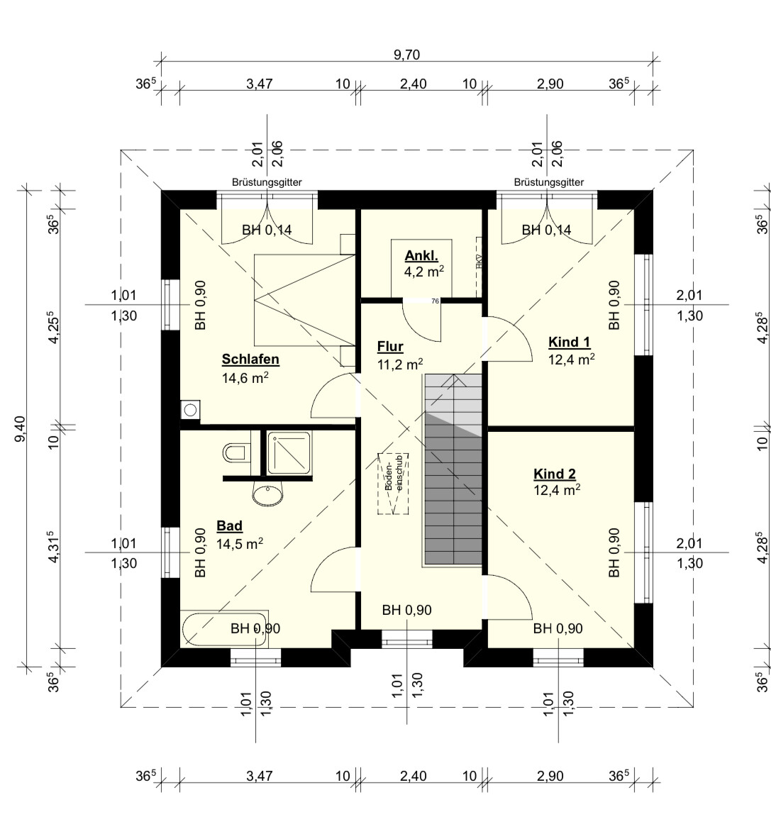 An die 2,97m Wand soll mit dem Kopfende zum Kinderzimmer Mara-Magdalena das Elternbett?Klar, damit sie beim Zeugen von Kind/Büro/Gast (komischer Name) auch live dabei sein kann!