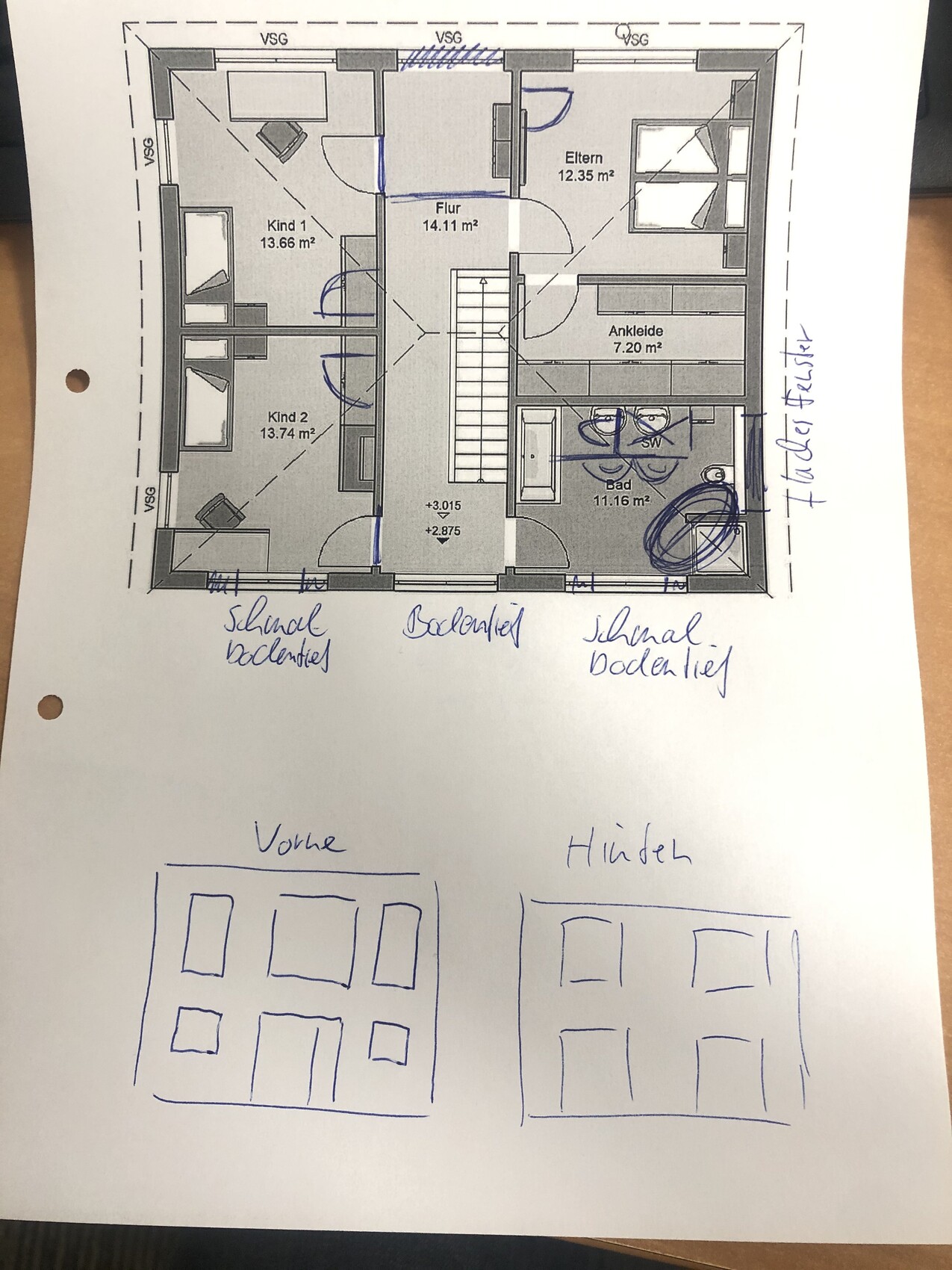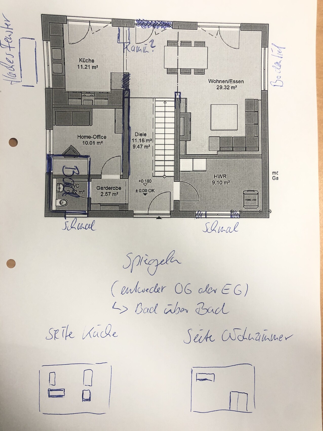 Ich bin mit 2 bekommen Grundrissen zum jetzigen Anbieter und eben den Wünschen Ankleide, symmetrische Fenster Front/Rückansicht.