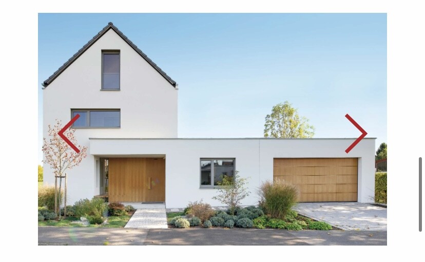 Vlt. magst Du das Forum ja mit Deinen Gedankengängen und vlt. auch ein paar Bildern dazu beteiligen.Eigentlich kann ich nicht mehr dazu sagen, als ich das in meiner Anfangsfrage gemacht habe. Prinzipiell gefällt uns ein „cleanes“ Aussehen schon, wollen aber auch nicht die schwarz-weiß-Optik der typischen Neubaugebiete. Daher hätten wir stattdessen bei Dach und Fenster evtl. zu hellgrau gegriffen und mit einer Holz-Haustüre und einem Holz-Garagentor um etwas „Wärme“ ins Gesamtbild zu bekommen. (anbei ein Inspirationsbild)