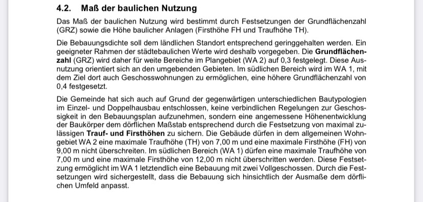 Baut ihr in NRW ? Kannst, wenn du magst, auch den Bebauungsplan nennen (kein Link). Nehme an, ihr baut in WA2 ?