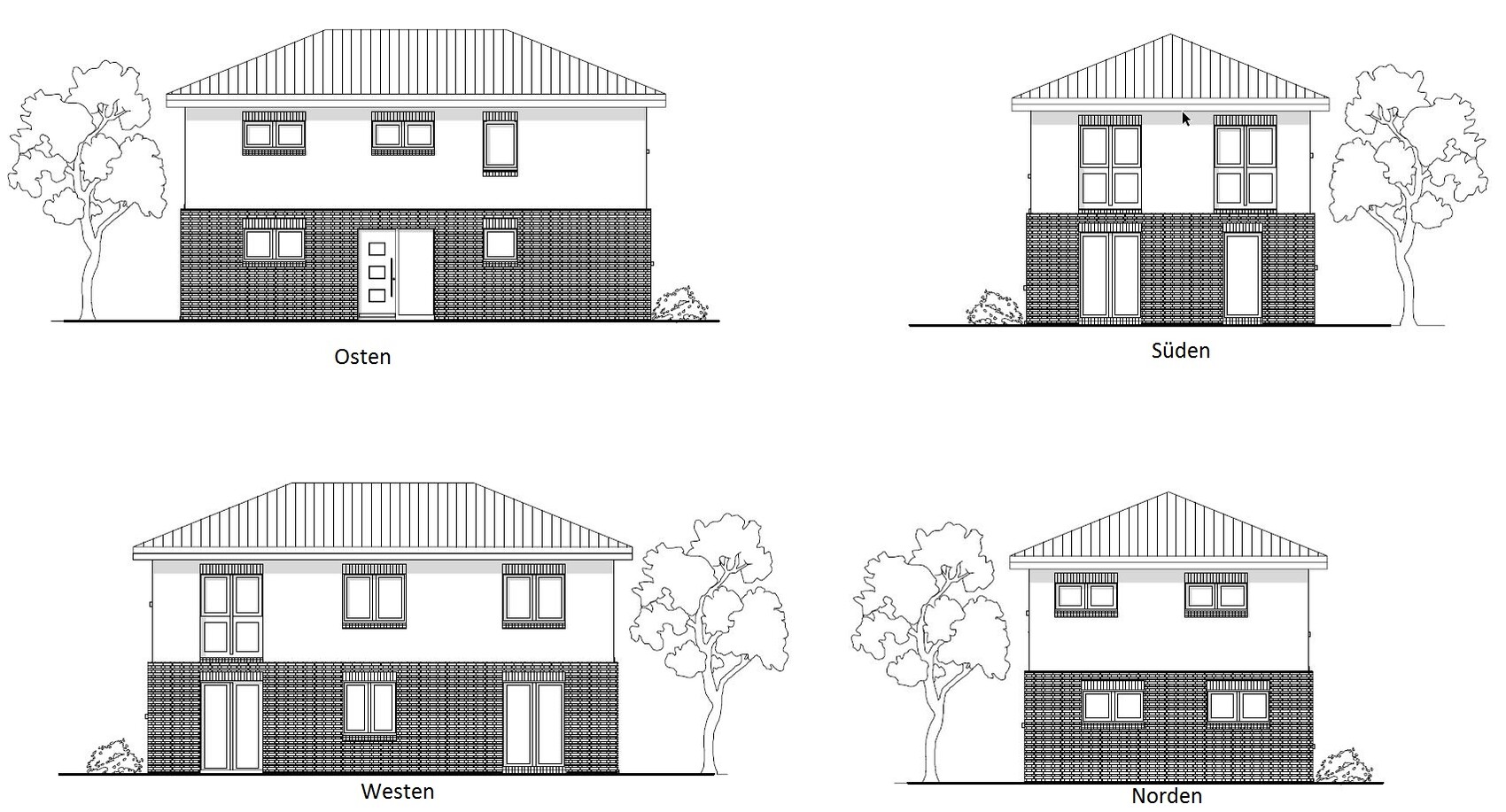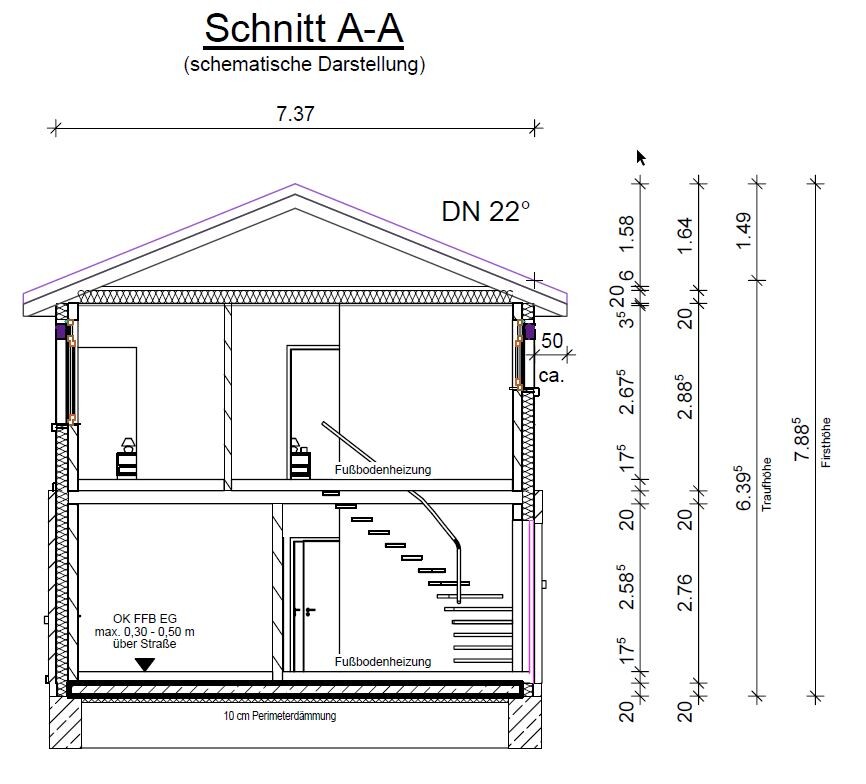 - Die Nordwand wird im EG zu 1/2 bis 2/3 mit dem Carport/Garage verdeckt sein.