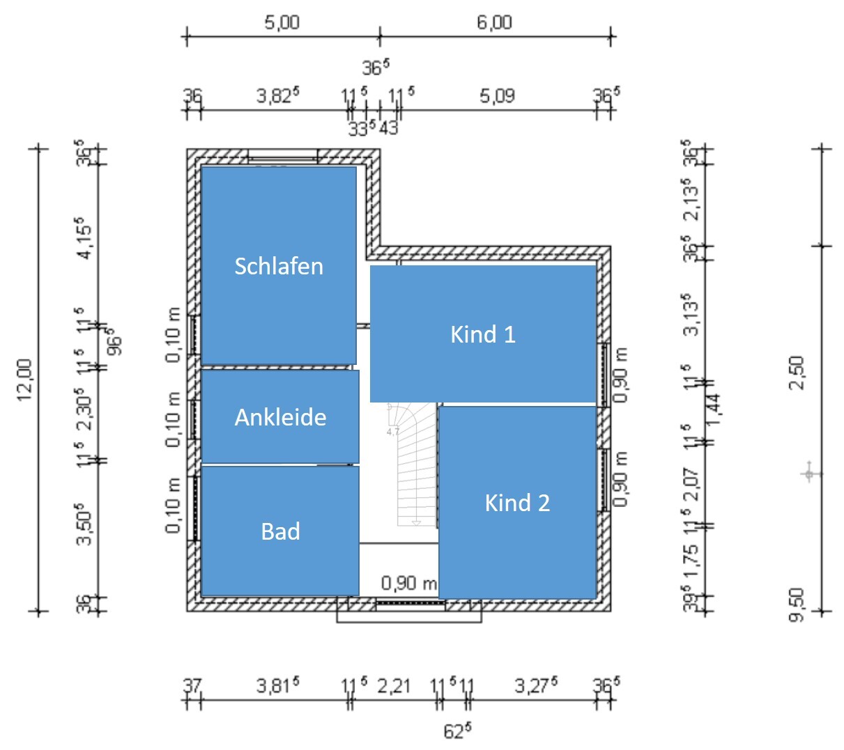 - Die Positionen der Einrichtungsgegenstände in den Kinderzimmern ist noch nicht final. Wir wollten durch das Einzeichnen lediglich identifizieren, wie viel Freiraum in den Kinderzimmern noch ist.