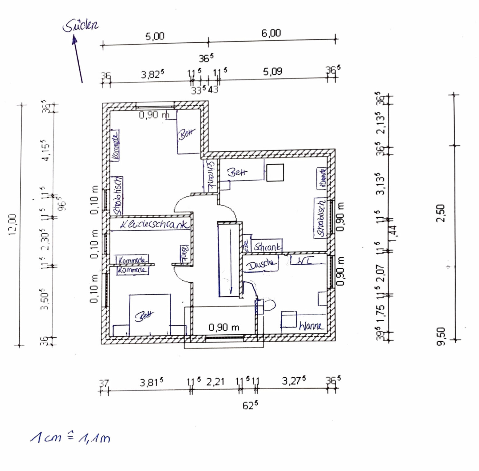 - Aufgrund der Himmelsrichtungen wollen wir ungern das Schlafzimmer in den Süden verschieben