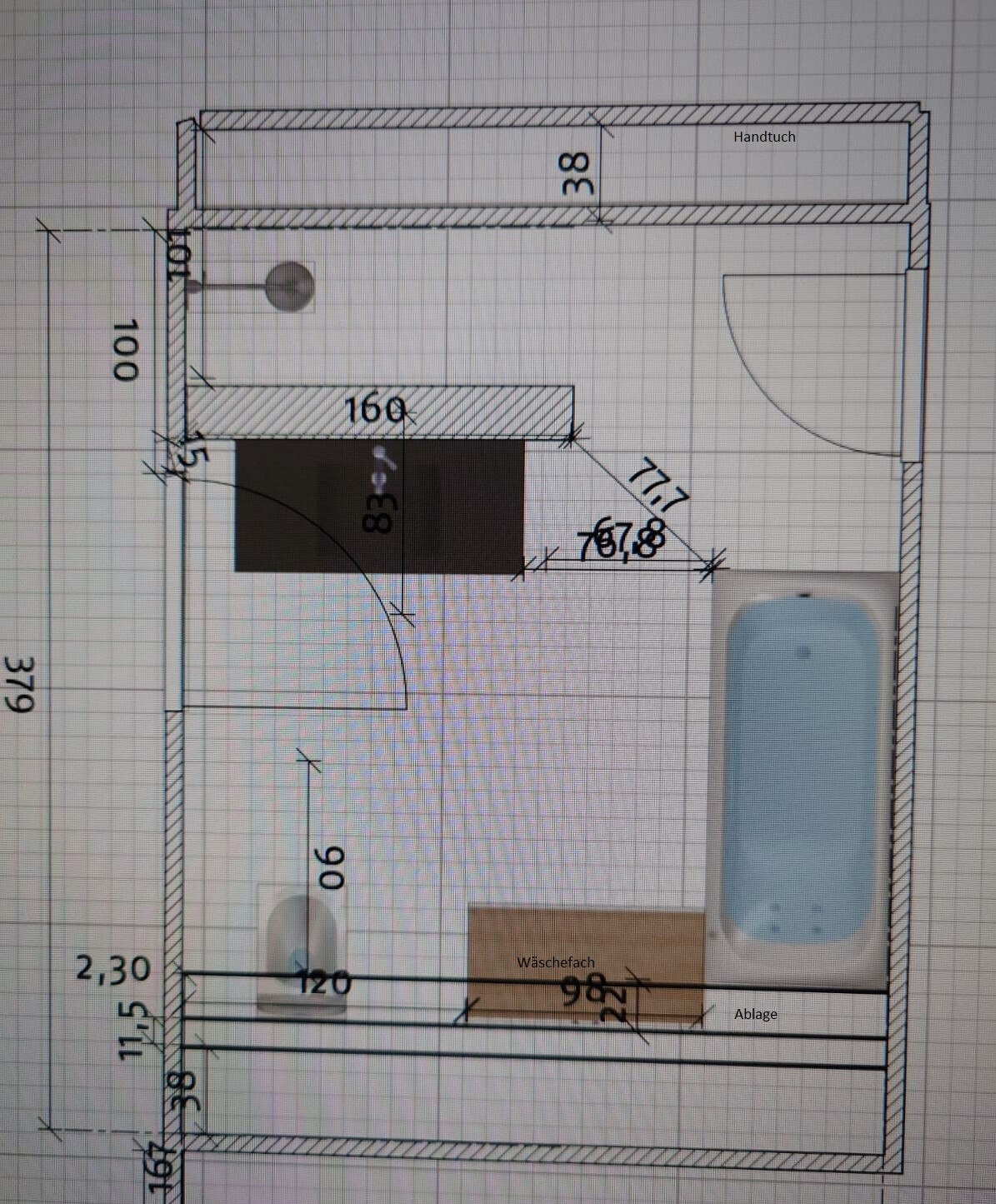 Papierturm schrieb:die Idee hatten wir bisher tatsächlich noch gar nicht, allerdings bin ich mir nicht sicher, ob ich das richtig verstanden habe, weil du einmal schreibst, das Waschbecken wäre dem Fenster zugewandt und danach sagst du, man sieht es beim Reinkommen. Aktuell haben wir nur 30 cm hinter der Tür, sodass wir fast 1,5 m vom Nachbarraum wegnehmen müssten, weil du ja meintest, die Öffnung der Dusche würde nach unten zeigen, habe ich das nun zumindest so interpretiert. Außer die Dusche wäre am Fenster, wo dann aber zum Einen das Fenster immer nass würde und das Waschbecken wieder zur Tür zeigen würde. Ansonsten stimmen deine Gedanken sehr mit unserem allerersten Versuch überein, gerade was Wanne und Klo betrifft. Vielen Dank.