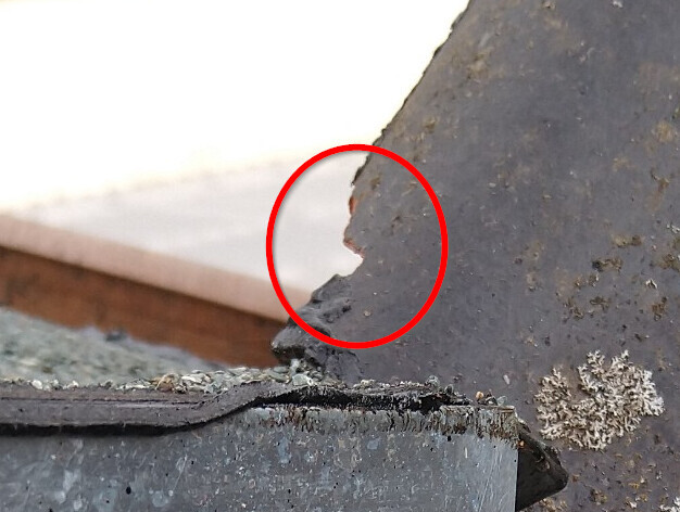 Zudem schaut es so aus, als ob euer Ziegel beschädigt worden wäre.