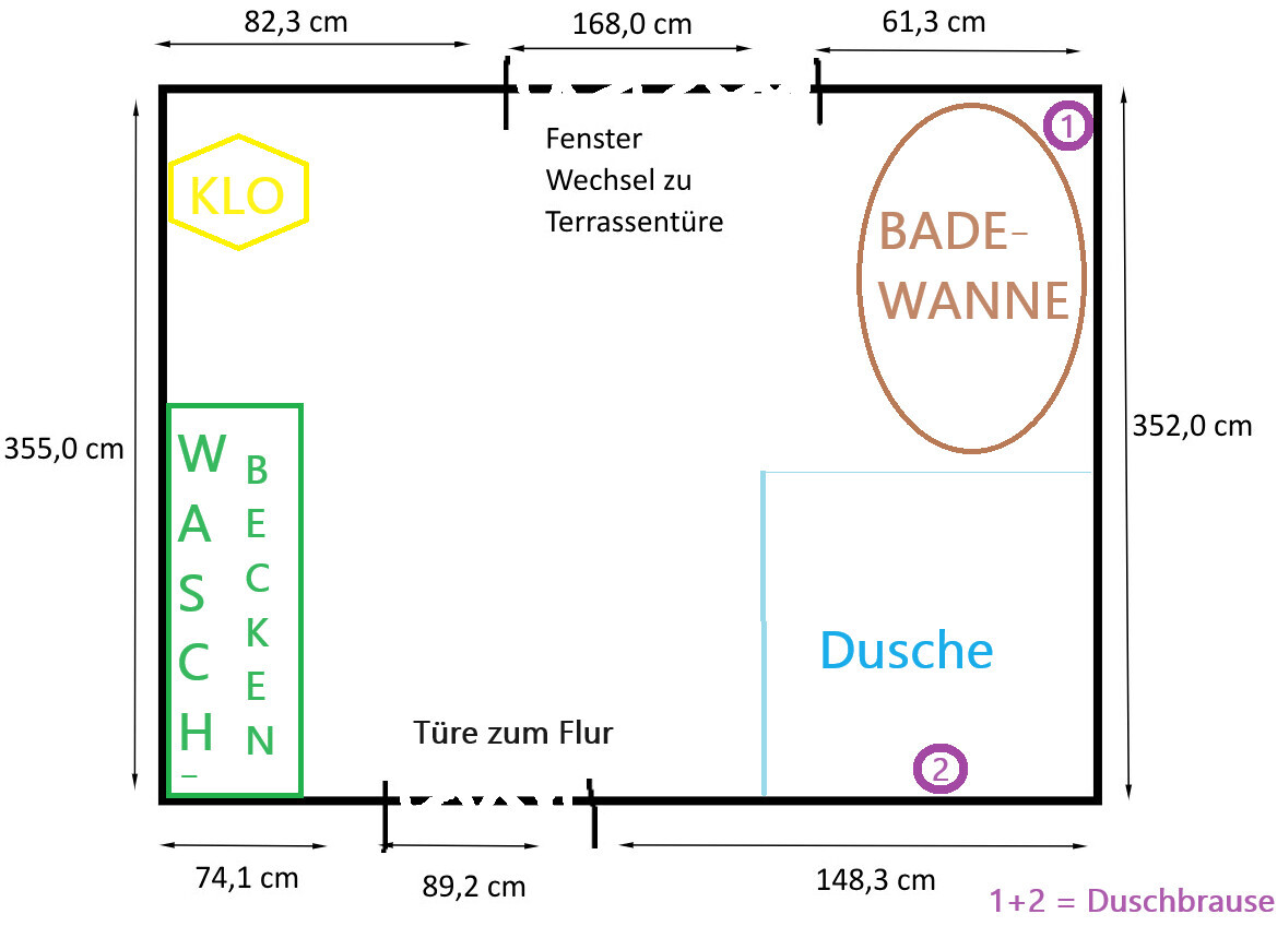 Was haltet ihr von unserem Vorhaben? Die Maße Badewanne & Dusche jeweils 165 cm sollten gerade ausgehen.. Badewanne Probeliegen steht aber noch aus :-/