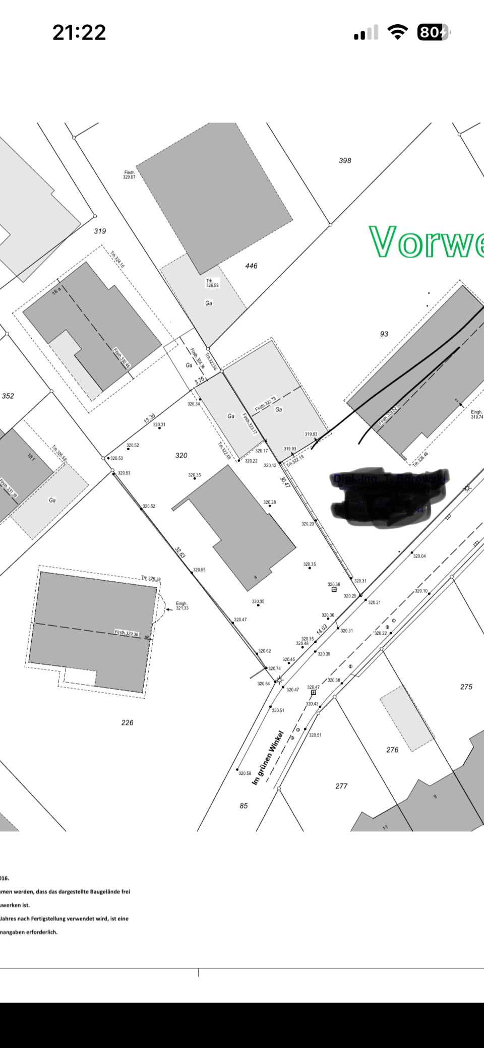 in der Hoffnung, dass das Flurstück 320 vermaßt dargestellt ist.