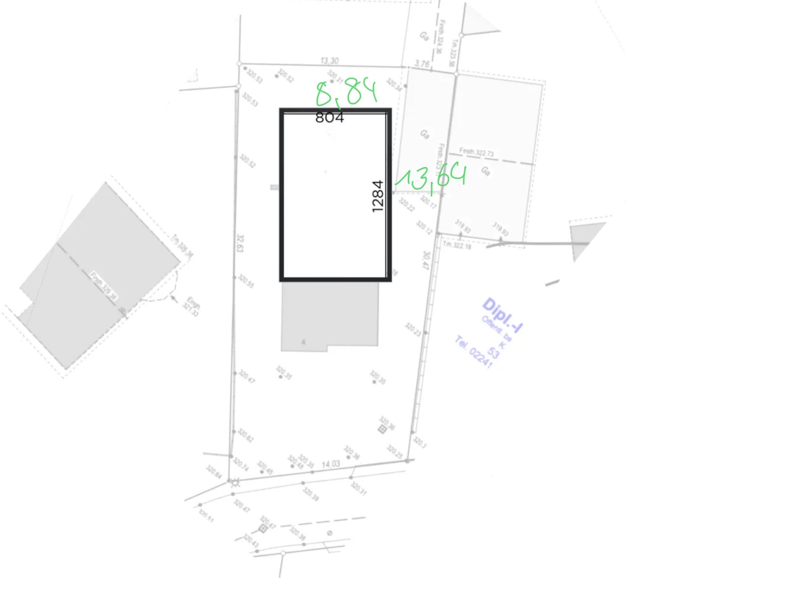 in der Hoffnung, dass das Flurstück 320 vermaßt dargestellt ist.