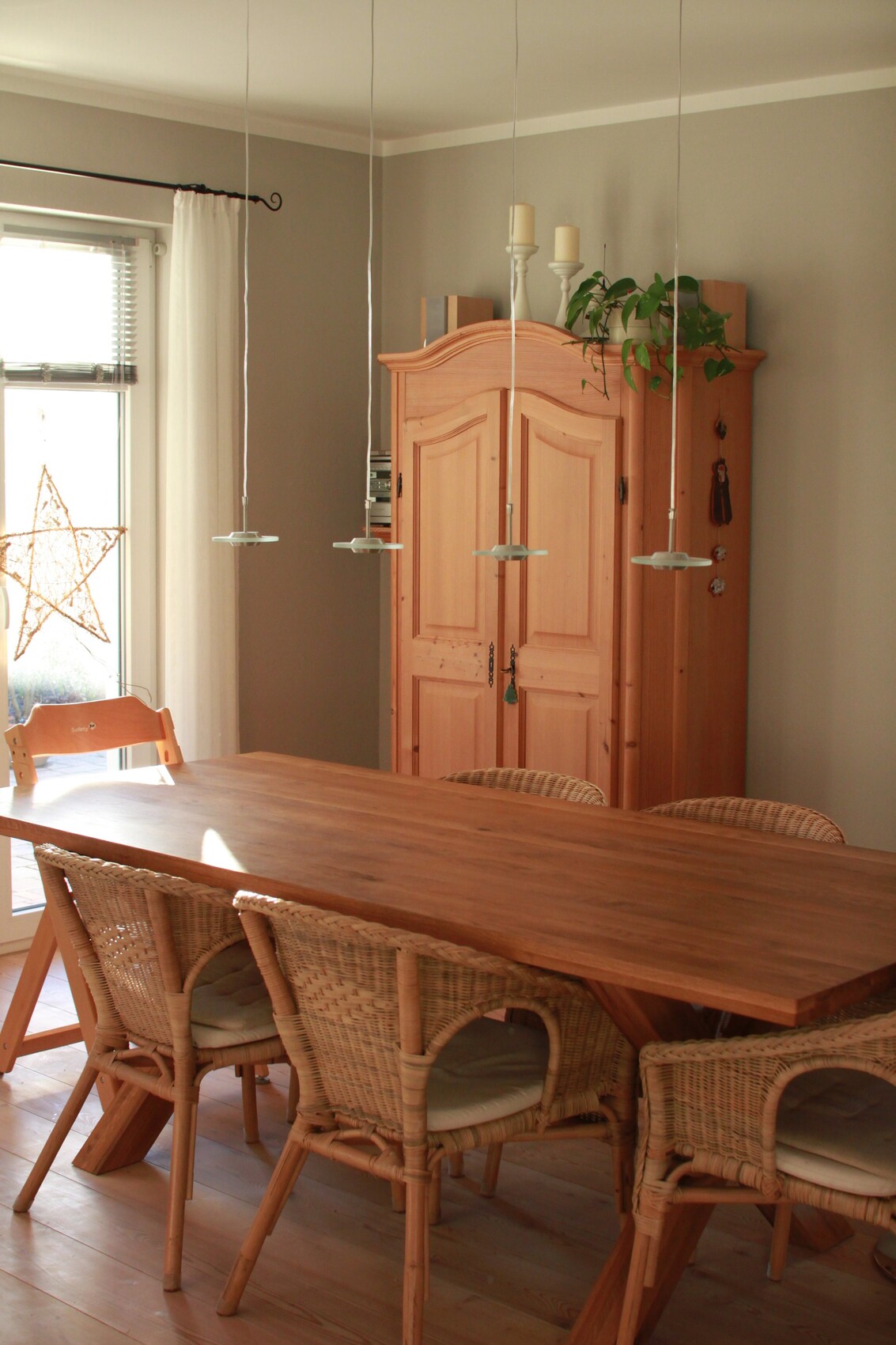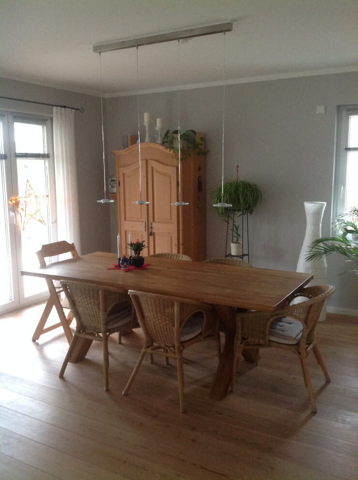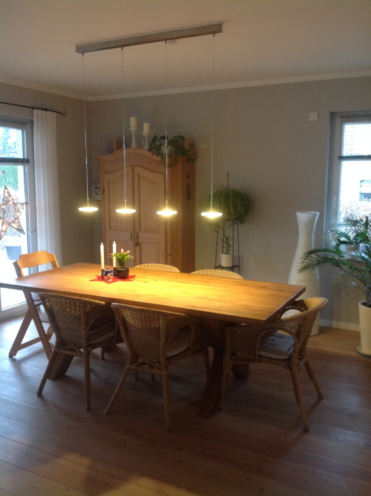 Wir standen vor dem gleichen Problem.. 80 cm war mir für unseren Esstisch auch viel zu wenig (was die Optik betrifft). Unser Tisch misst 100 x 220 cm. Es sollte zudem etwas filigranes sein. Wir entschieden uns für diese 120 cm lange Lampe "Santander" (Preis ca. 250 EUR.. war etwas runtergesetzt).. LG