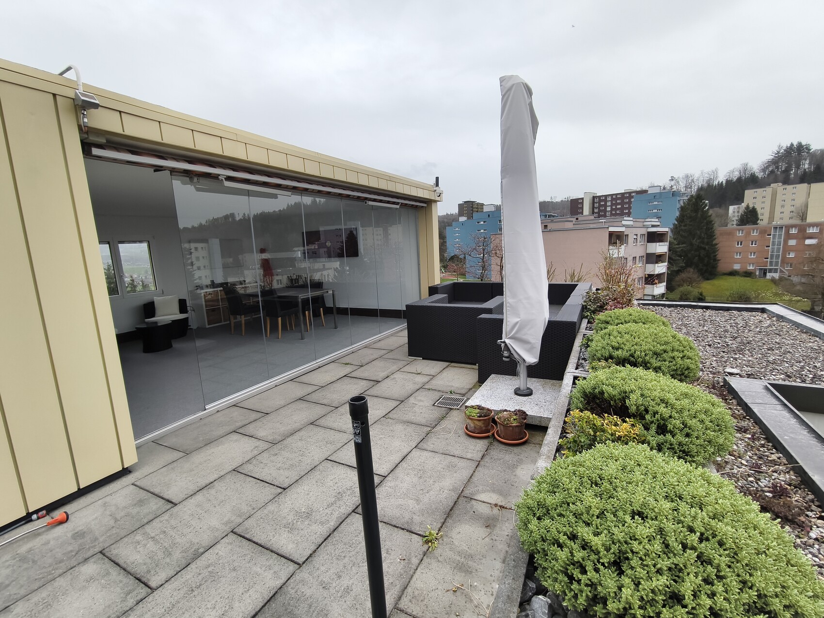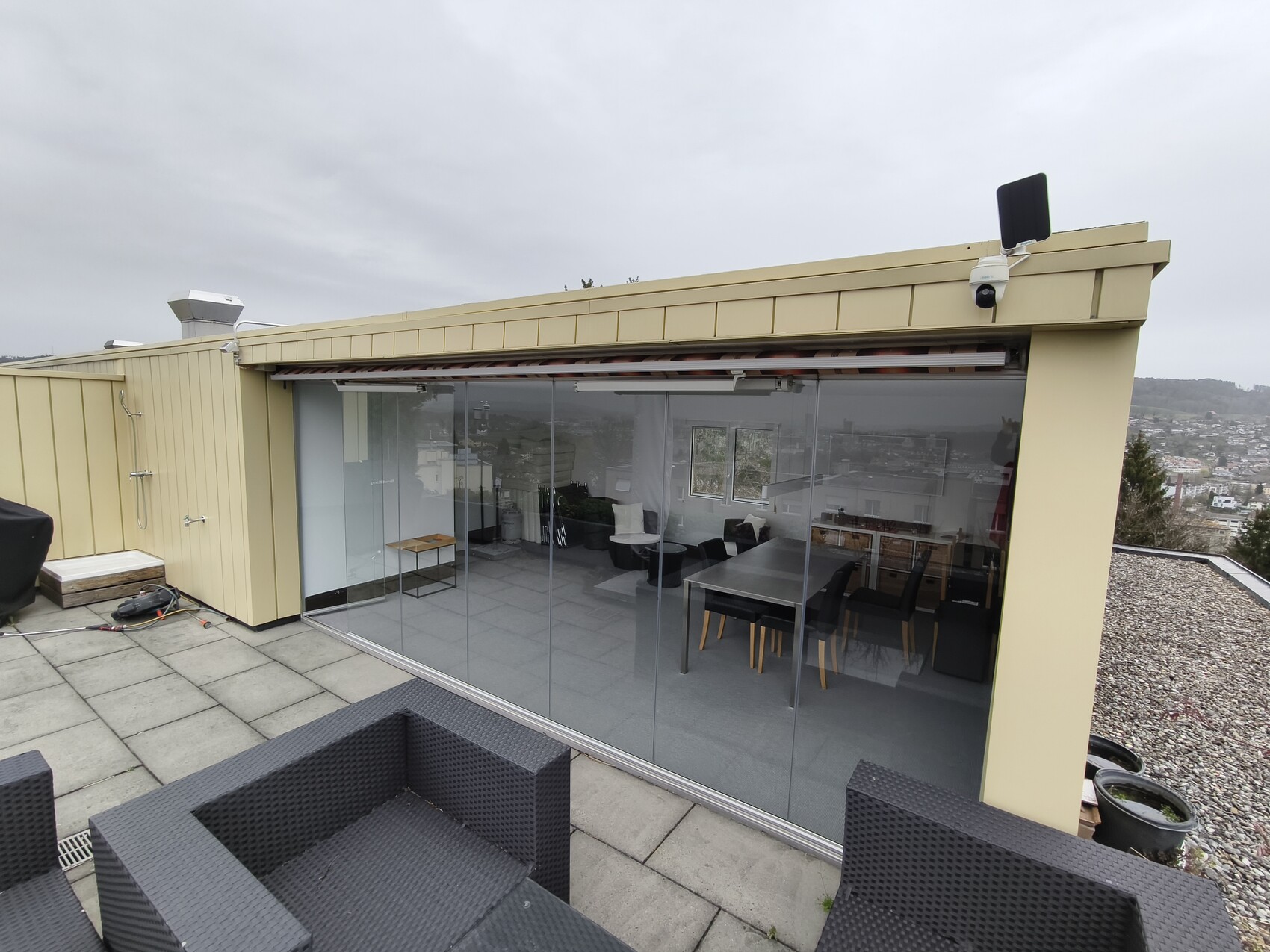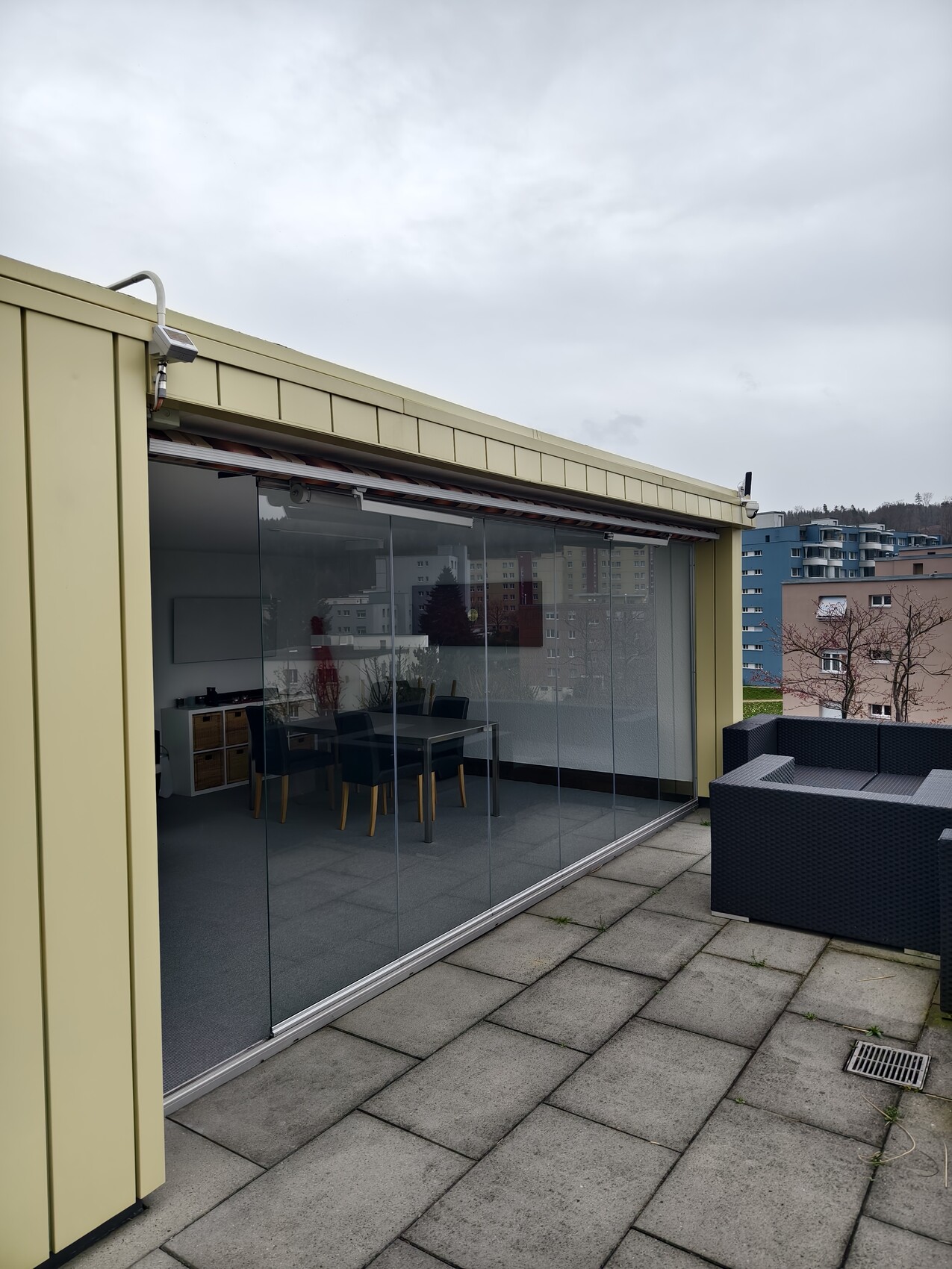 Wir möchten gerne unsere Markise, welche sich auf der Dachterrasse befindet ersetzen. Ausrichtung ist gegen Westen