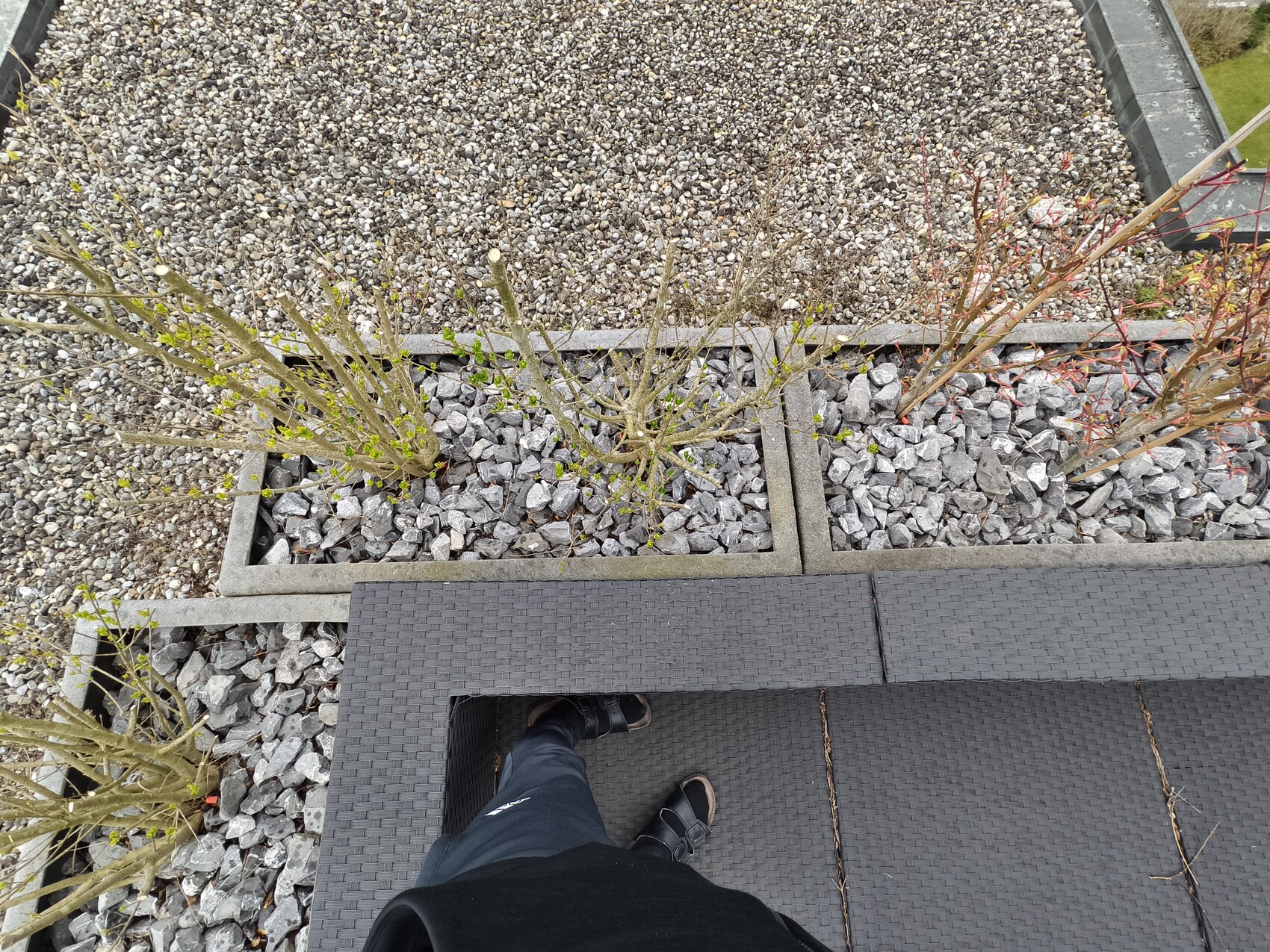 Ist es möglich die Pfosten auf den Gehwegplatten zu montieren? Diese liegen auf Kies. Auf den Gehwegplatten stehen zudem noch Blumenkisten, siehe Foto.