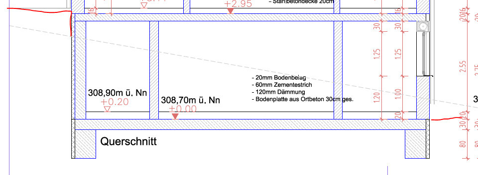 Er hat dann den Vorschlag gebracht, dass wir die Dämmung am östlichen Ende komplett weglassen, da da sowieso das ganze Stockwerk bis oben von Erde bedeckt ist. An der vorederen Seite meinte er, könne er auch die Dämmung am Fundament weglassen, wenn ich das möchte, um dadurch Kosten zu ersparen. Das habe ich etwas kritisch gesehen und mit meinem Architekten besprochen (der mich offiziell nur bis zu den genehmigten Plänen begleitet hat).