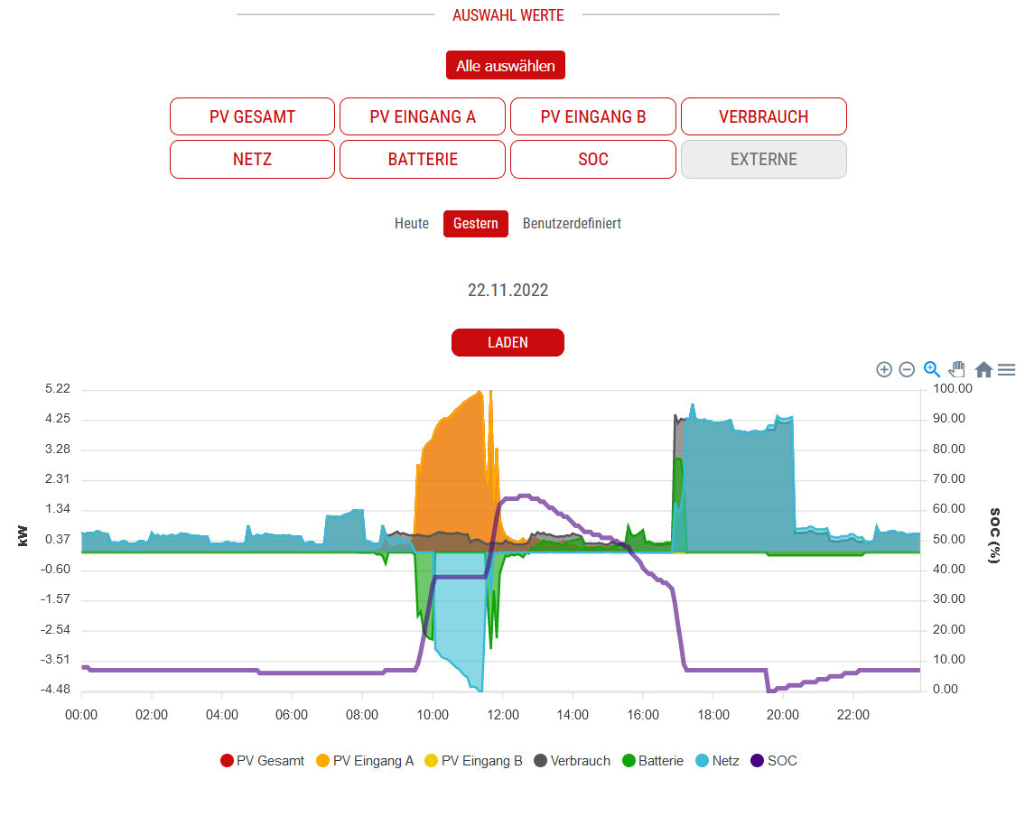 Bei mir kommt im Dezember die Außensauna dazu mit 9KW Ofen ;-) Auch dafür ist die Batterie zu knapp bemessen 🙄Wieviel kommt denn bei Dir am Tag im Durchschnitt im Dezember runter und wie voll bekommst Du im Dezember den Speicher??