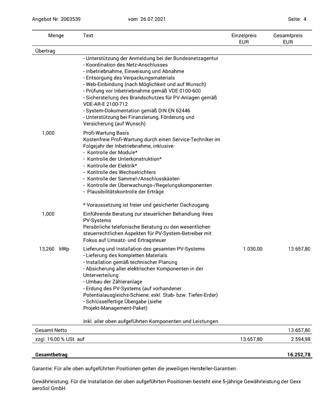 Ich stelle Mal ein Angebot rein. Ist von letzten Jahr, die Module sind inzwischen drauf. Endgültige Installation und Anbindung erfolgt bis Anfang August.