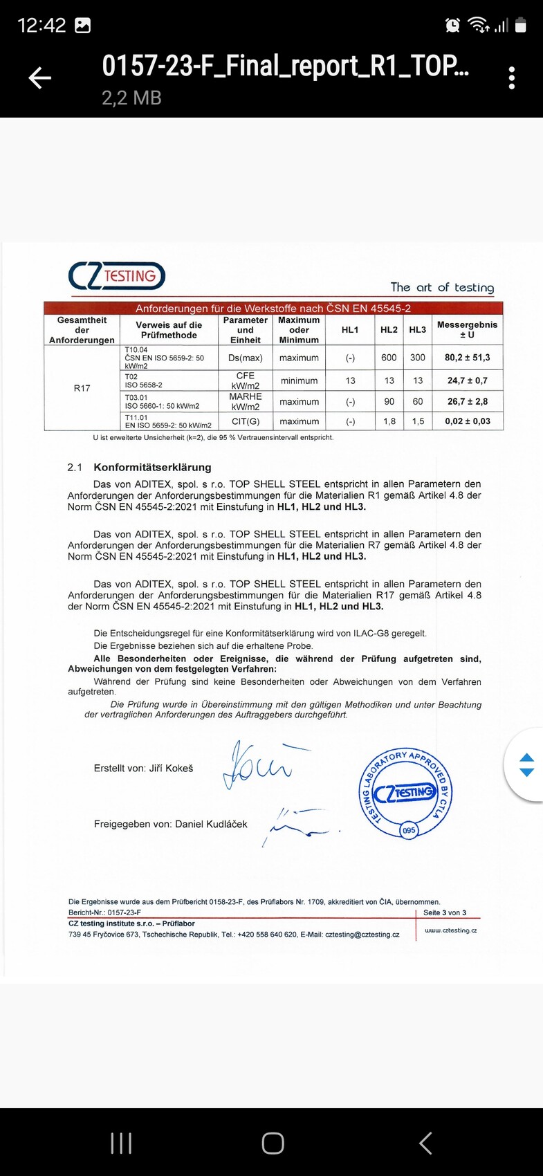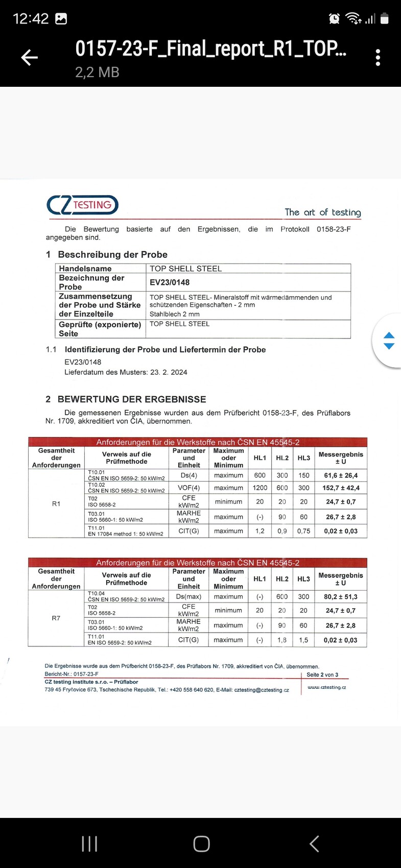 Die EN ISO 3795 wurde vorgezeigt und gesagt das die nur das getestet haben was gefordert war und die Werte erreicht worden sind.