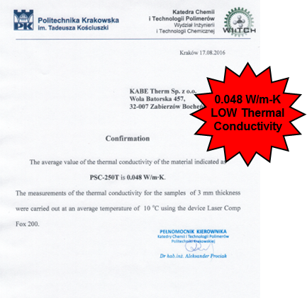 Damit hätte das PSC eine 400 mal geringere Wärmeleitfähigkeit wie Styropor (WLG 040).