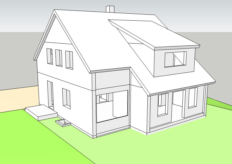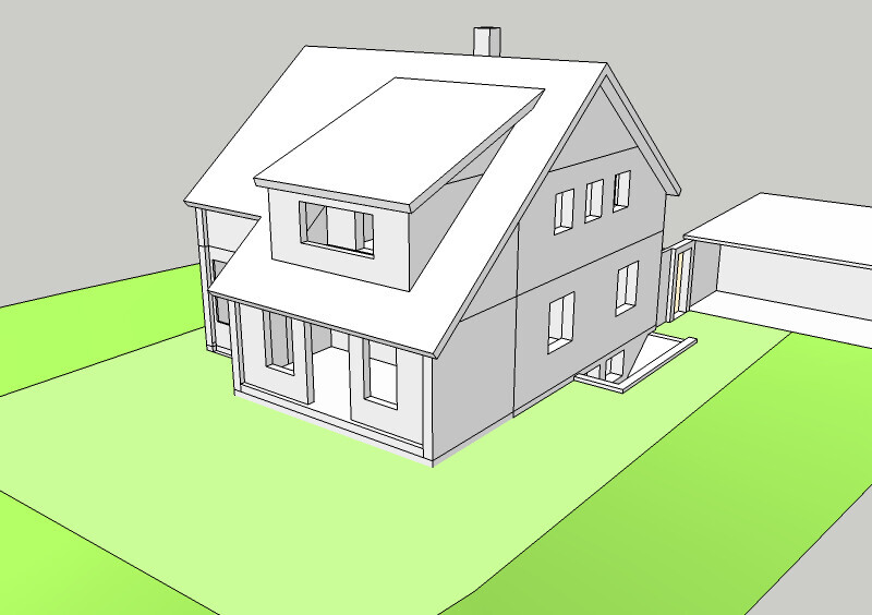 Die Gaubengröße/Gaubendachwinkel und Fensteranordnung/-Größe ist nur exemplarisch und bedürfte einer gestalterischen Optimierung.