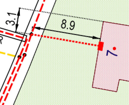 Anbei der Lageplan: Eingezeichnet das Baufenster laut Bebauungsplan und der allg. Grenzabstand vom 3m. Abstandsflächen würden eingehalten, da das Haus bis zur 6m-Giebelbreite nicht höher als 6m ist (0,5H Grenzabstand bis 6m-Giebelbreite).