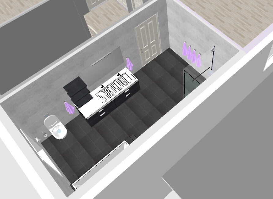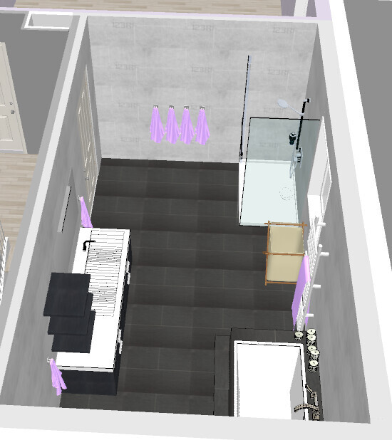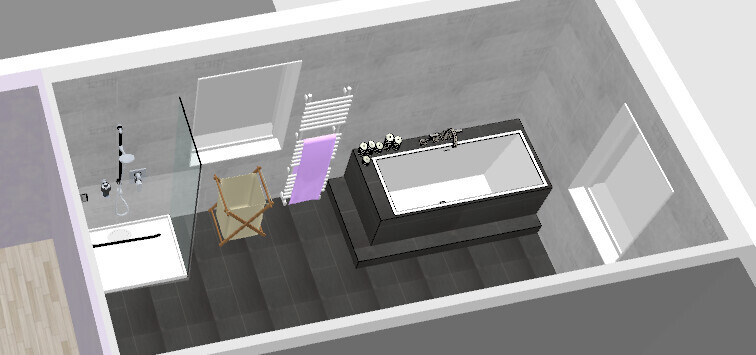 Nur die begehbare Dusche habe ich so nicht übernommen. Dies hat mehrere Gründe. Einerseits mag ich das Licht was man hat, wenn man komplett Glas drum hat und es zieht nicht so. Des Weiteren hat der Boden durch die Duschwanne keine Fugen. Wenn man Haare bis unter den Po hat und öfters mal welche verliert, dann möchte man die nicht in jeder Fuge einsammeln müssen. Dann lieber gesammelt im Abflussbehälter *pfui* 😀