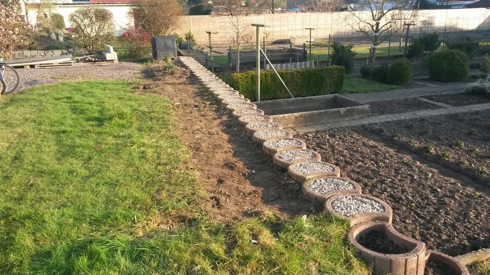 Schön dass die Hecke steht. Das ändert so ein Baustellenerscheinungsbild doch ganz schön.