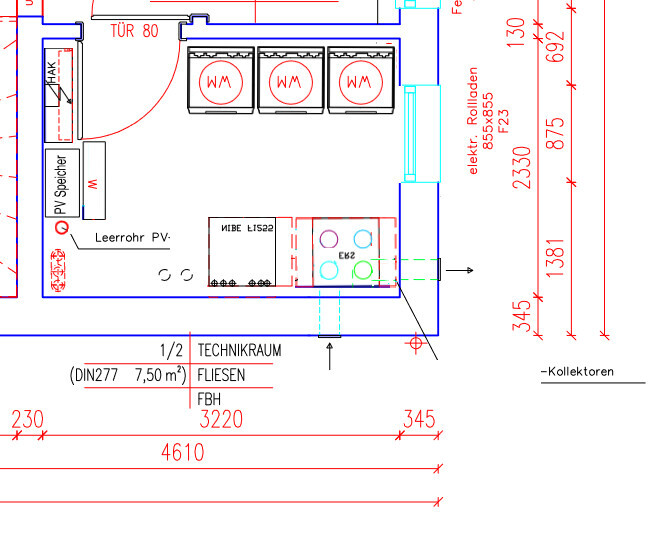 Ich kann verstehen, dass jeder Handwerker möglichst viel Platz für sein Gewerk haben will, aber als Bauherr(in) möchte ich nicht den Platz 'verschwenden'. Das ist für mich passive Technik, zB die Wärmepumpe brauche ich jeden Tag, aber ich muss da nicht aktiv ran. Tut mir leid, wenn das unbequem für die Montage ist, aber ich hab keine qm zu verschenken und die aufgerufenen Handwerkerpreise sind für mich inkl. 'Schmerzensgeld' für unbequeme Montage zu verstehen.Vielen Dank für die Einblicke. Wäre es machbar dass Sie mir den Ausschnitt aus Ihrem Plan vom Technikraum mal zukommen lassen? Das exzentrische Forum erlaubt mir leider (noch) nicht, Ihnen eine private Nachricht zu schicken, da ich "nicht genügend Beiträge verfasst" habe... Auch wenn Ihr Raum andere Maße als unserer hat, so wäre es für uns eine große Hilfe da wenigstens mal einen Blick drauf werfen zu können. Wir wissen sonst nicht wohin mit unseren Sachen 🙁Harakiri schrieb: