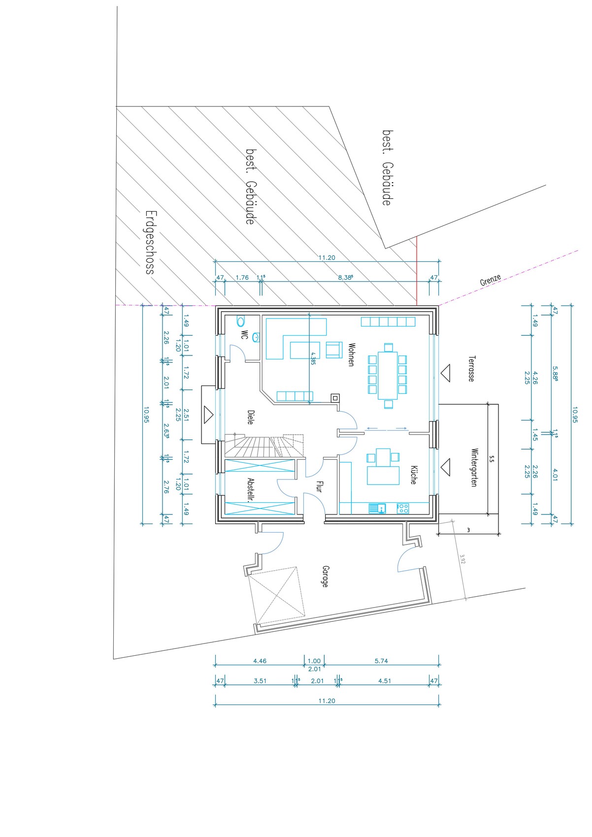 Grenzbebauung Rinne an Rinne. Die Garage läuft konisch da Sie auch auf einer Grenze steht!