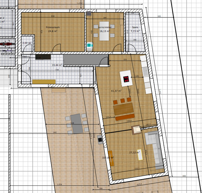 Grundsätzlich: Wir haben nun den Hausplan ziemlich überarbeitet und zwar auf Basis von Ansätzen eines zweiten Planers. Da diese derzeit noch handschriftlich erfolgten (digitale Version wird er bis Anfang Jänner erstellen), habe ich diesen jetzt mal mit dem Programm Sweet Home 3D digitalisiert (bitte wieder um kritische Meinung dazu):