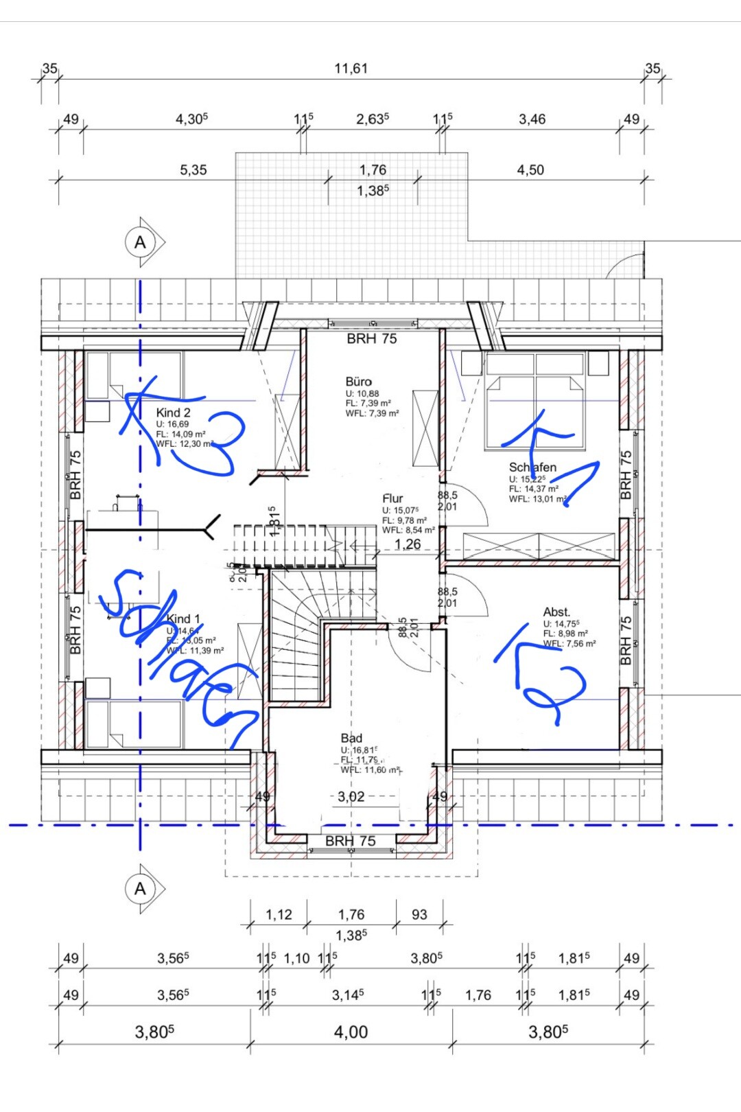 Auch deinen Vorschlag im OG finden wir gut. Mein Mann hat noch ein paar Kleinigkeiten mehr verändert und wir finden, so sieht der Grundriss im OG schon ganz gut aus.