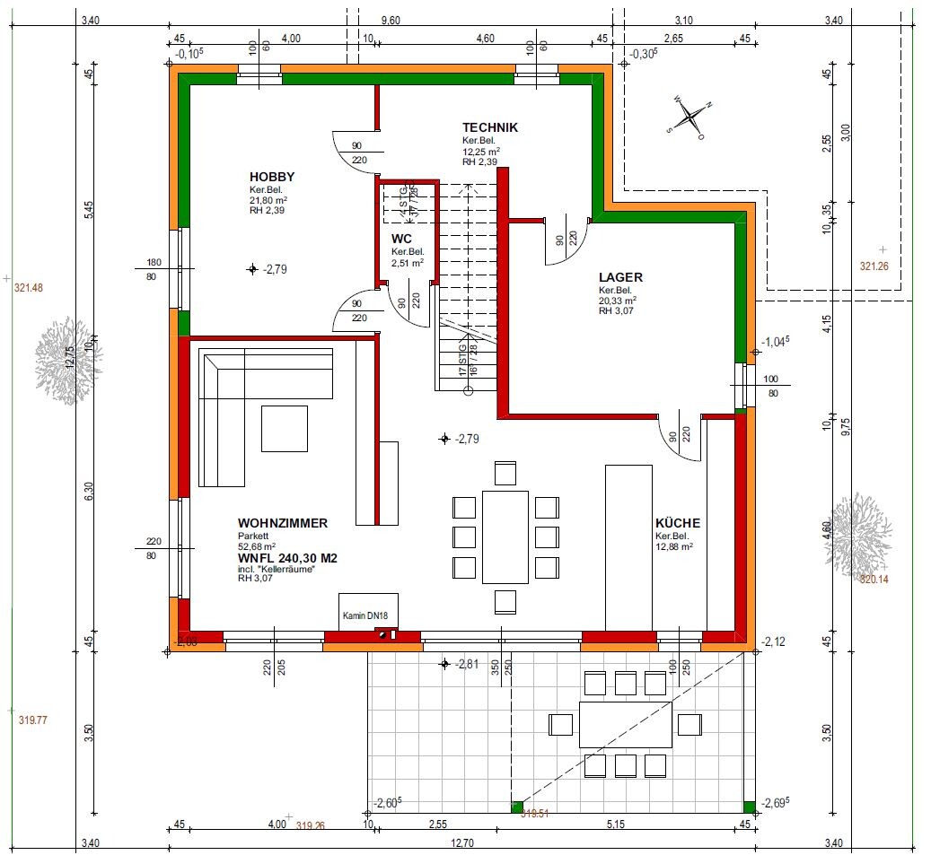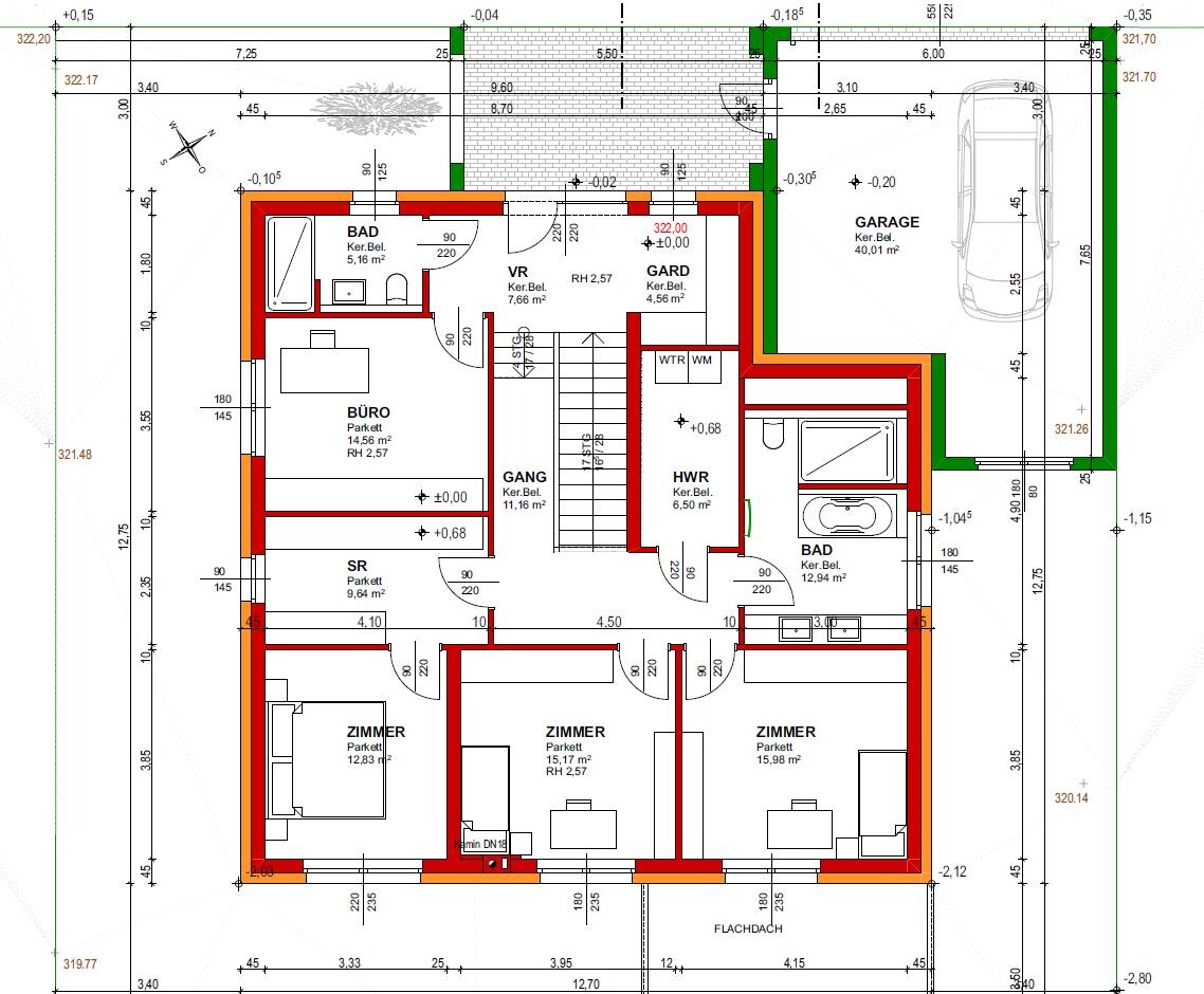 Die Garage ist etwas kürzer gemacht worden. Wir hatten mir der Version aus dem initialen Post die maximale zu bebauende Fläche schon leicht überschritten.