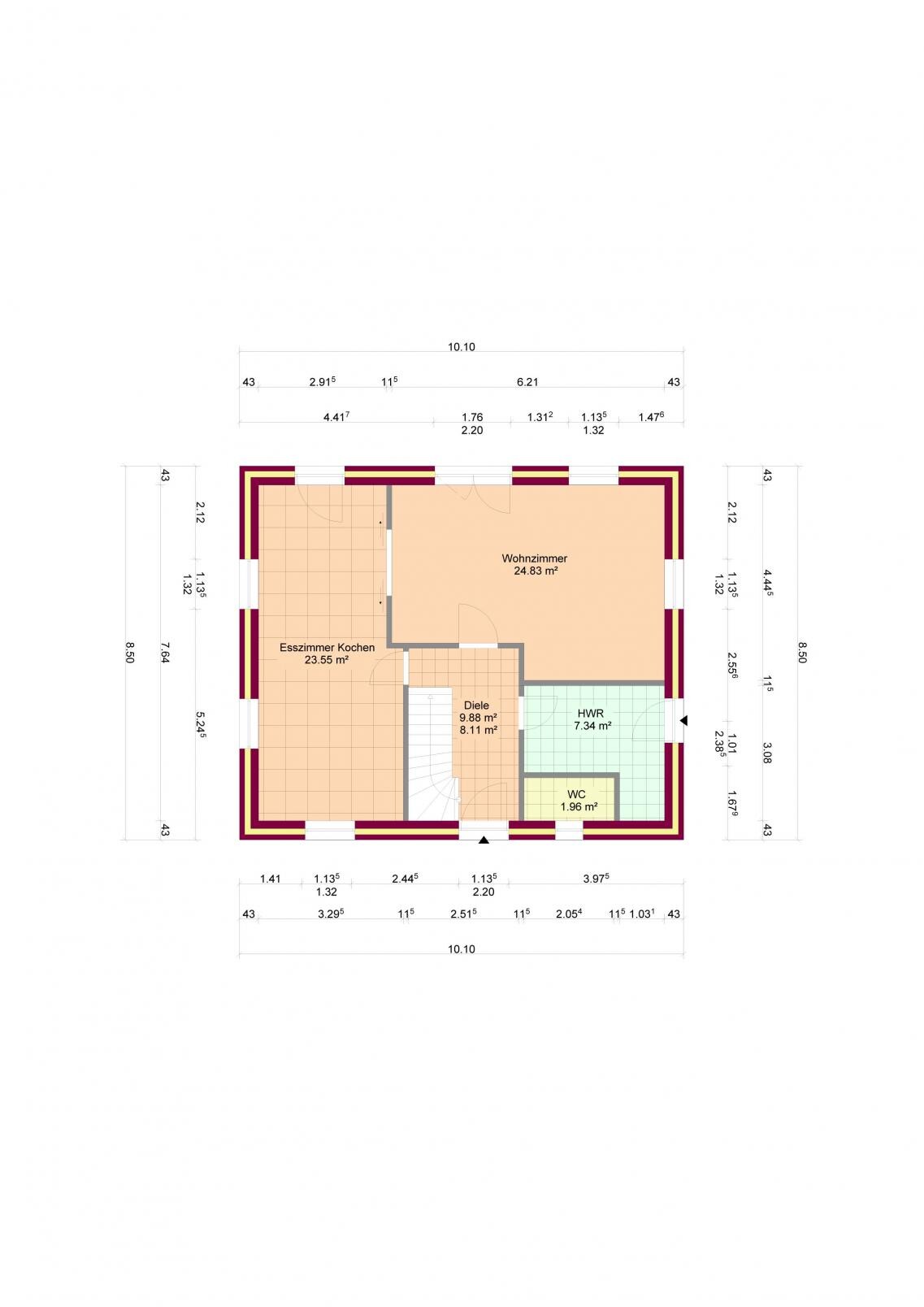 Das Gäste-WC neben der Eingangstür finde ich zu klein, zudem hat es keine Tür 🙂 Der Hauswirtschaftsraum kann je nach Haustechnik zu klein sein, da du hier ein totes Eck hast.