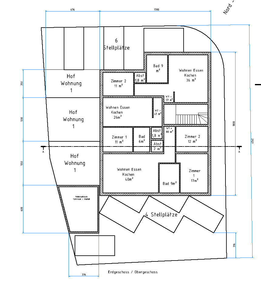 Für Fahrräder und Abstellmöglichkeiten habe ich ein Nebengebäude vorgesehen. Dort befindet sich das Gelände vom Nachbar sowieso 3 Meter höher als auf meinem Grundstück.